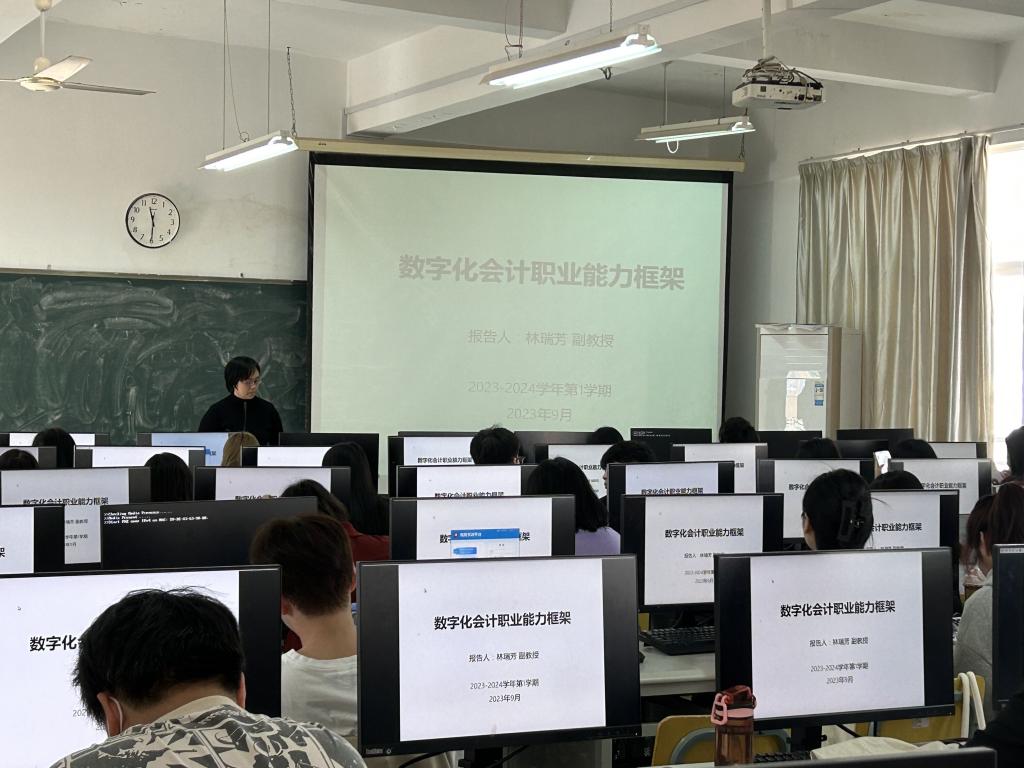 2023年9月19日下午,林瑞芳老师在实1604为2022级会计学专升本的部分同学举办了一场主题为“数字化会计职业能力框架”的讲座。