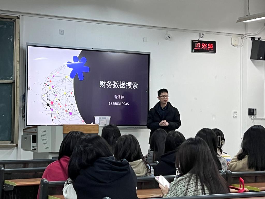 2023年12月5日,袁泽林老师在教3301为2020级会计学(金融方向)4班的学生带来了一场精彩讲座,主题为“财务数据搜索”。