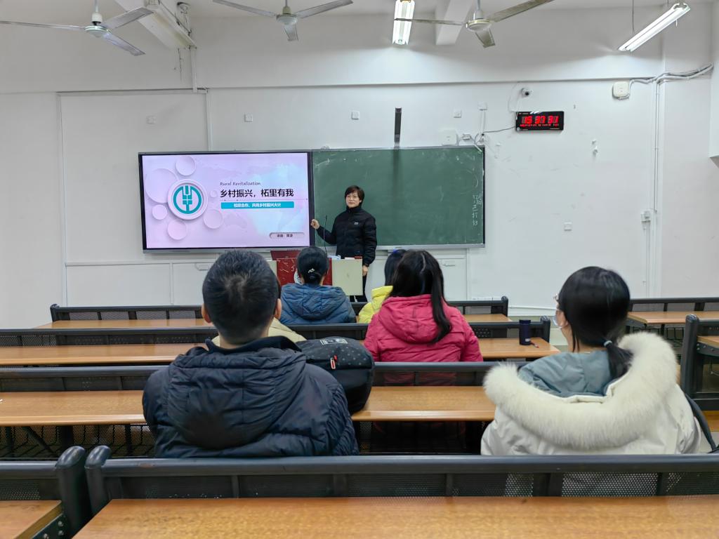 2023年12月20日下午,我院教学培训师、副教授黄凌老师在教4102教室为学院有志于参与乡村振兴的老师开了一场“乡村振兴,柘里有我”的主题讲座。