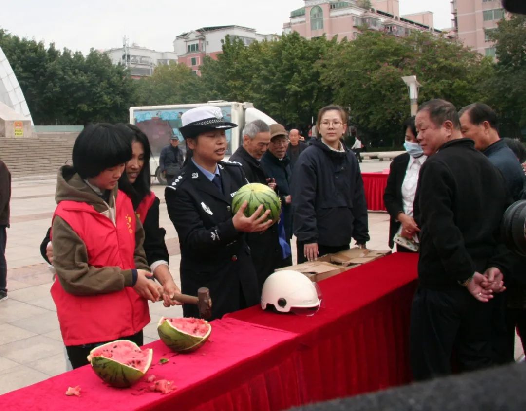 活动前,福外财务与会计学院大学生志愿者协助布场,将于“交通安全日”主题绘画活动中获奖小朋友的绘画版面摆放整齐以供路人参观并为其颁奖。随后交警便结合日常工作经验,为长乐居民具体讲解交通安全知识,福外财会学院志愿者负责在讲解时按顺序为巡逻车队贴车贴,在总指挥员的一声令下,巡逻车队陆续出发,其中包括长乐交警、美团等,志愿者协助长乐交警用西瓜模拟不戴头盔出车祸后对头部的伤害,体现头盔在出行安全中的重要性。最后便是知识问答环节,即对交警说明的交通安全知识进行复习巩固。