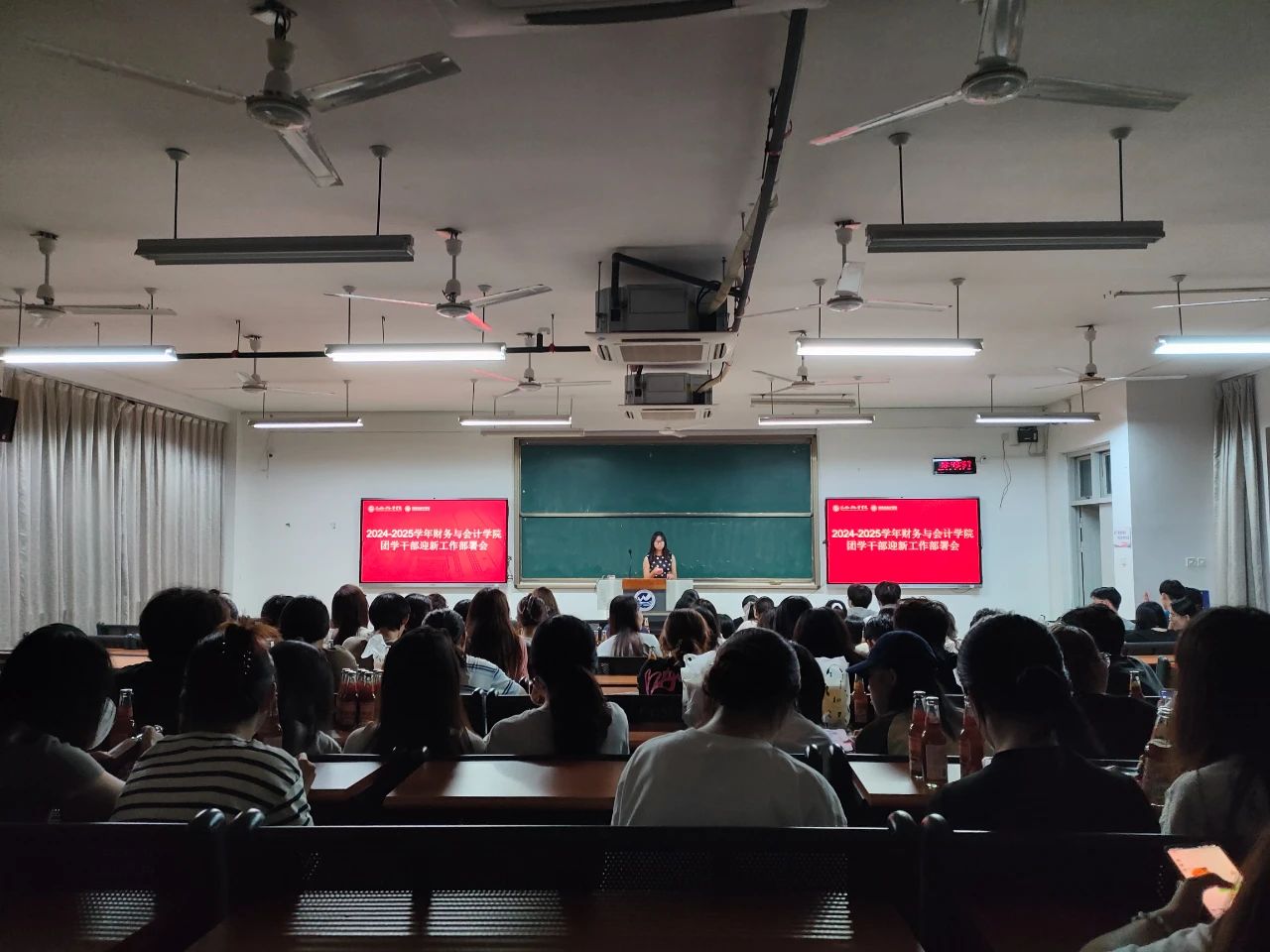 9月5日晚上,福州外语外贸学院财务与会计学院召开2024-2025学年第一学期团委学生会工作部署会。团委书记、办公室副主任潘云燕,团委副书记刘佳佳,学生会秘书长郑文辉以及财务与会计学院团学全体成员参加此次大会。
