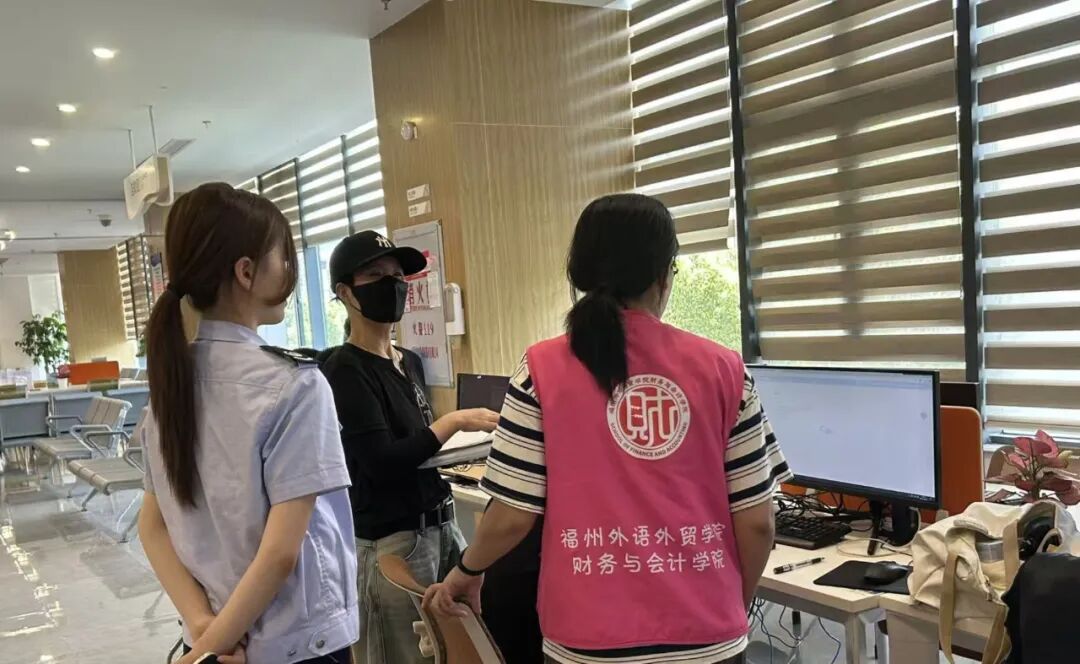 从初入办税场景的 “懵懵懂懂”,到熟练协助纳税人取号咨询、游刃有余对接业务的 “驾轻就熟”;从实践初期面对税务流程的生疏局促,到主动与工作人员交流请教、精准回应纳税人需求的从容自信,福州外语外贸学院 “税月同兴队” 成员在实践中完成了从 “理论学习者” 到 “实务服务者” 的蜕变。