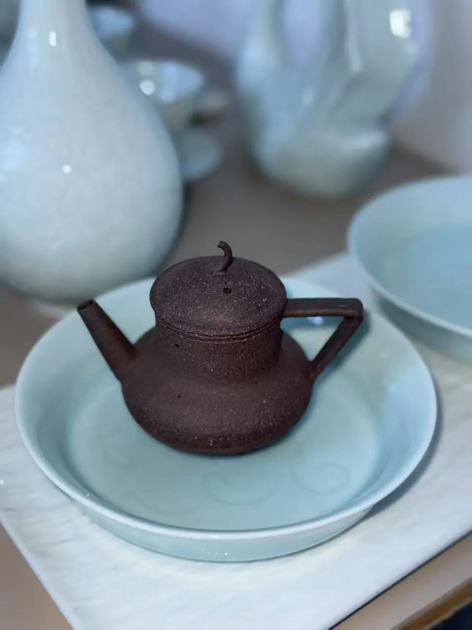 8月29日,“梦笔生花队”踏入浦城大口窑,开启宋代青白瓷文化探寻之旅。站在大口窑遗址前,宋代制瓷业的繁华场景仿佛重现,窑址留存的历史痕迹,默默诉说着当年匠人的精湛技艺与窑场的热闹过往。走进陶瓷展馆,宋代砚滴成为焦点——圆润水滴状造型线条流畅,憨态小动物设计惟妙惟肖,温润如玉的釉色在青白交融间散发淡雅光泽,完美诠释宋韵文房的雅致与实用兼具的审美情趣。