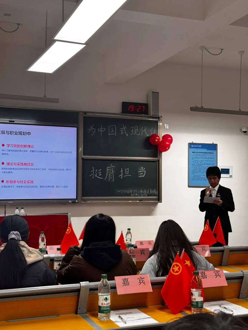 团支书充分发挥引导作用,积极与同学们互动,巧妙穿插朗诵环节。江国宁同学朗诵的《你是浪花里的一滴水》和钱陈同学朗诵的《雷锋日记》,使大家在经典文字中感悟雷锋精神的内涵。团支书还通过板书提问,启发同学们深入思考。让雷锋精神激励着我们在生活中主动关心、帮助他人,积极投身志愿服务,用实际行动传递温暖与善意;在学习中,激励我们勇于面对困难,保持勤奋刻苦的态度,不断提升自身的知识与能力。在参与朗诵学习雷锋精神的活动后,我对雷锋精神有了全新的认识,它不仅是一段历史记忆,更是一种跨越时空、历久弥新的精神指引,为我的学习与生活注入源源不断的力量。