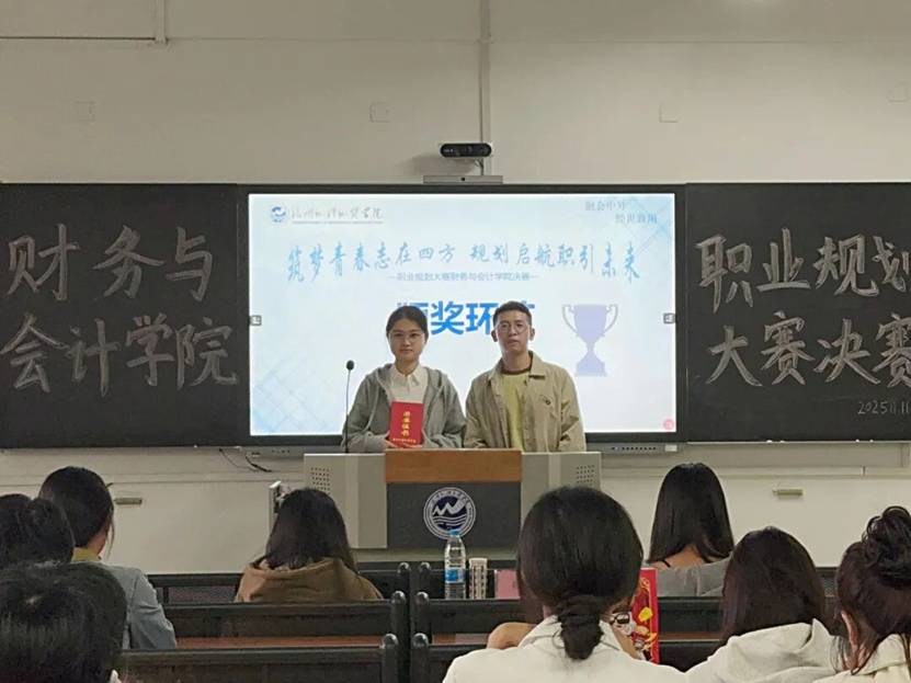 为贯彻落实党中央、国务院开元网页版做好高校毕业生就业工作的决策部署,增强大学生职业规划意识,指导其通过学习实践提升综合素质和能力,及早做好就业准备,以择业新观念打开就业新天地,促进高质量充分就业。2025年11月11日,福外财务与会计学院以“筑梦青春志在四方,规划启航职引未来”为主题的大学生职业规划大赛决赛于教学楼举行。本次大赛邀请了财务与会计学院团委实践部指导老师杨一帆以及财务与会计学院学生会轮值主席张艺婷、李璐璐同学担任评委。