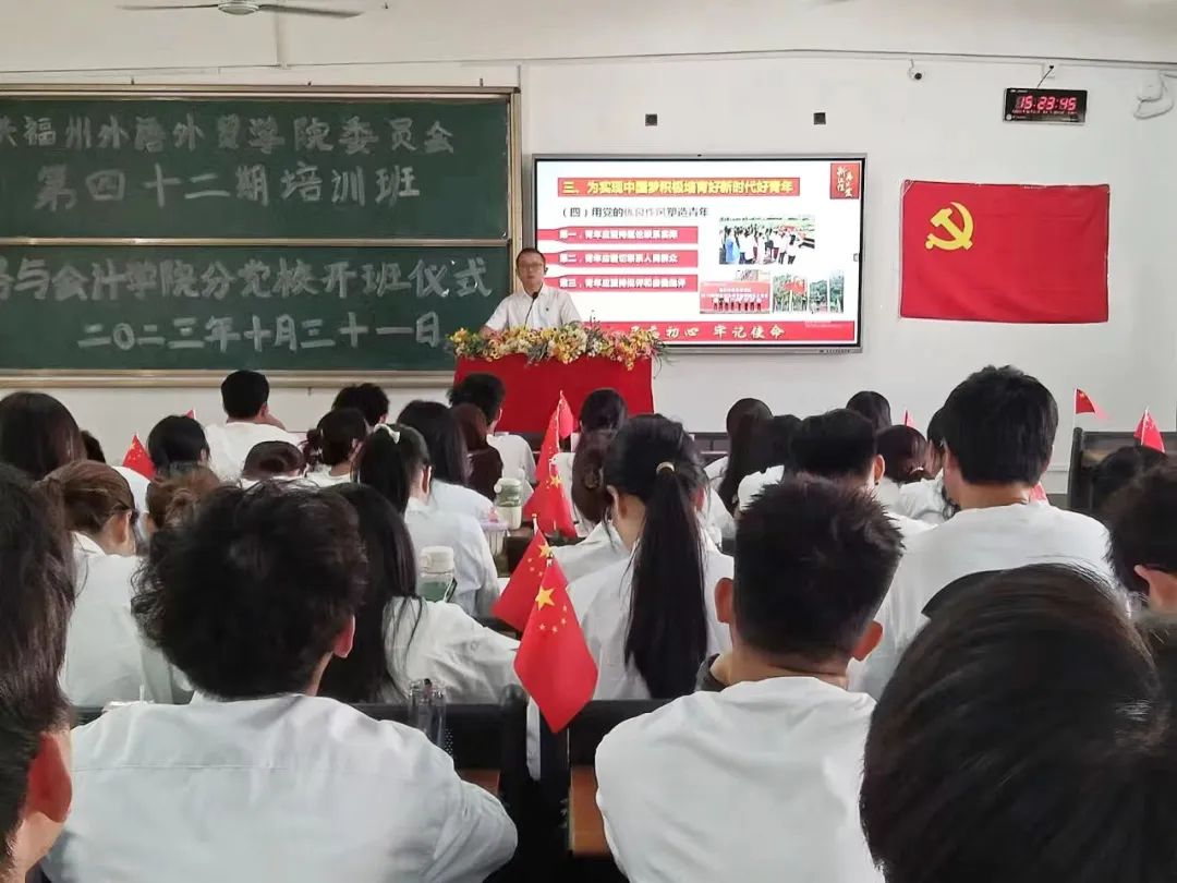 为推进习近平新时代中国特色社会主义思想主题教育走深走实,帮助财务与会计学院第四十二期入党积极分子加强党性修养,坚定理想信念,10月31日,学院分党委书记、副院长、分党校校长李川以“深入学习贯彻落实党的二十大精神,争做新时代好青年”为题为入党积极分子上主题教育专题党课“第一课”。