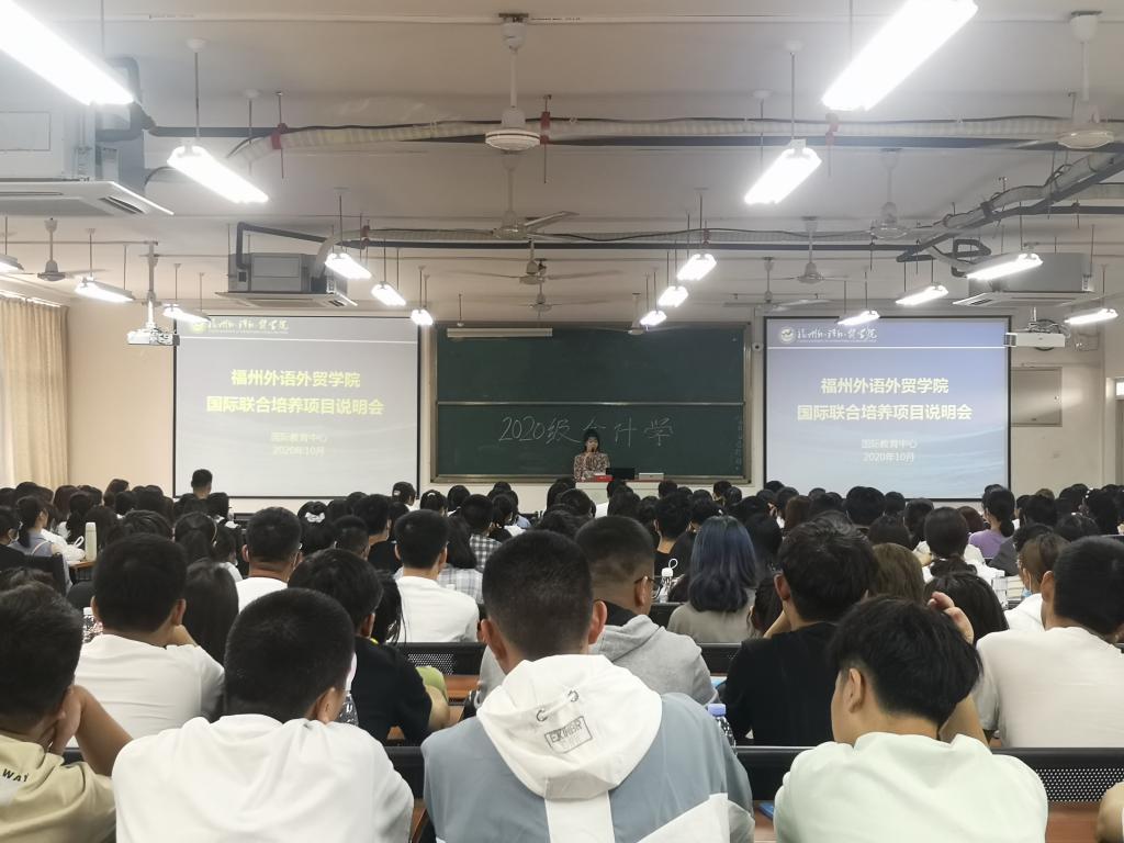 10月12日,国际教育中心启动2020级新生国际联合培养项目的宣讲。今日6场次宣讲会由国际教育中心老师主持,参会人员为2020级财金学院6个专业全体新生。