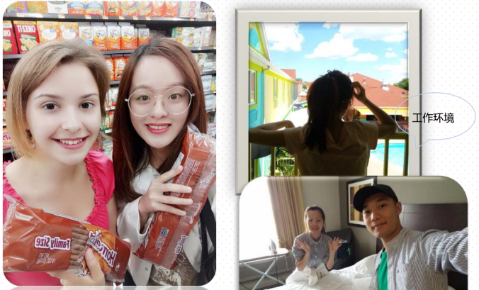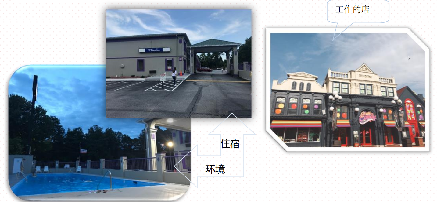 杨佳佳:我们在这里一切都好,环境还行 住宿也算好,有公用中国厨房 可以自己做饭,房间里有微波炉,配备基本全,楼下有个小泳池,酒店离工作地点步行大概 15 分钟 ,工作地方环境优美,游客多 ,排的工时还算合理 ,还在慢慢适应阶段,比刚来的时候适应得多。目前在室内的的 coast candy 工作,目前已经领了一周工资。