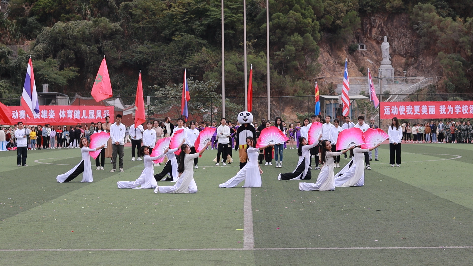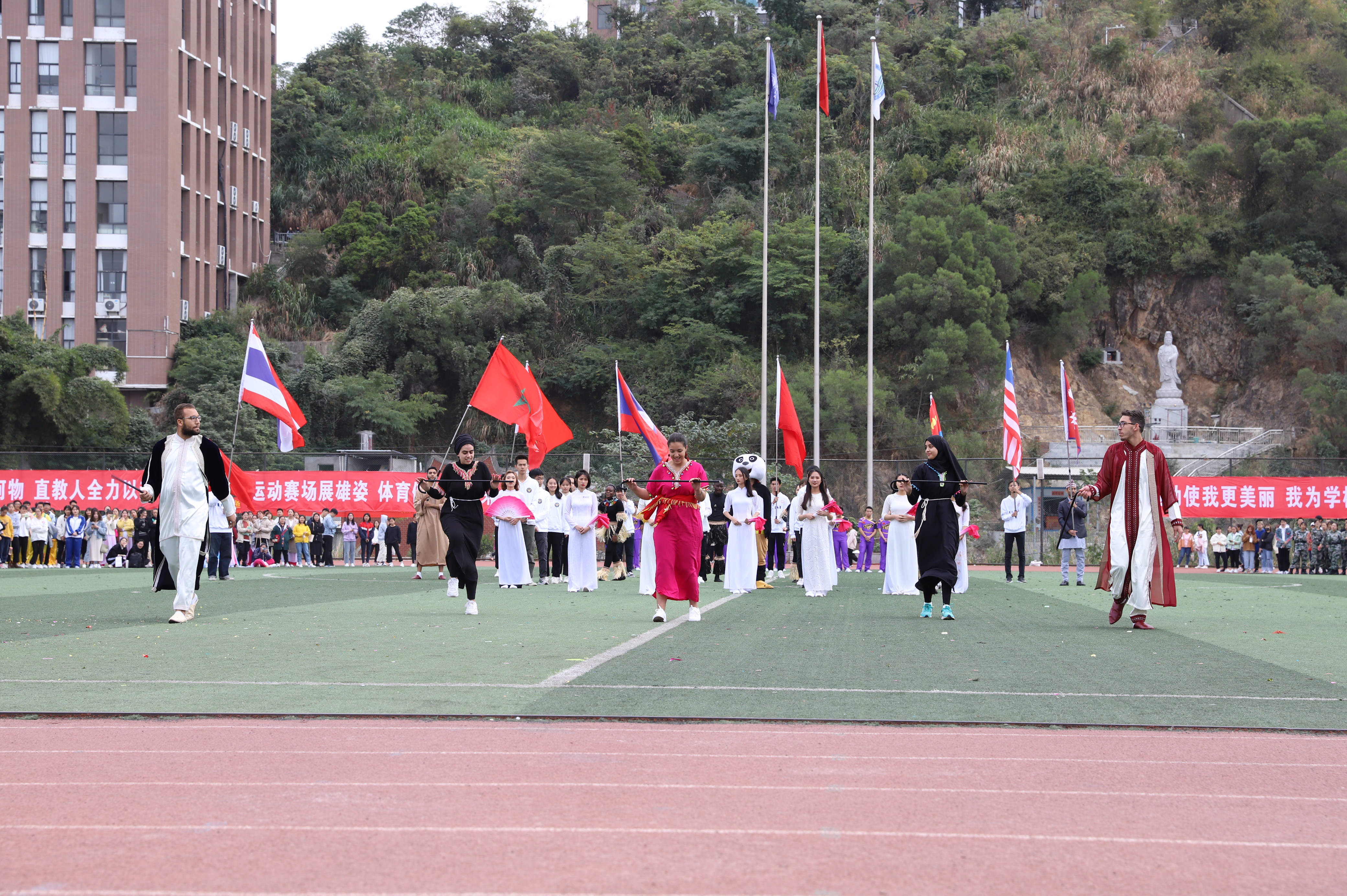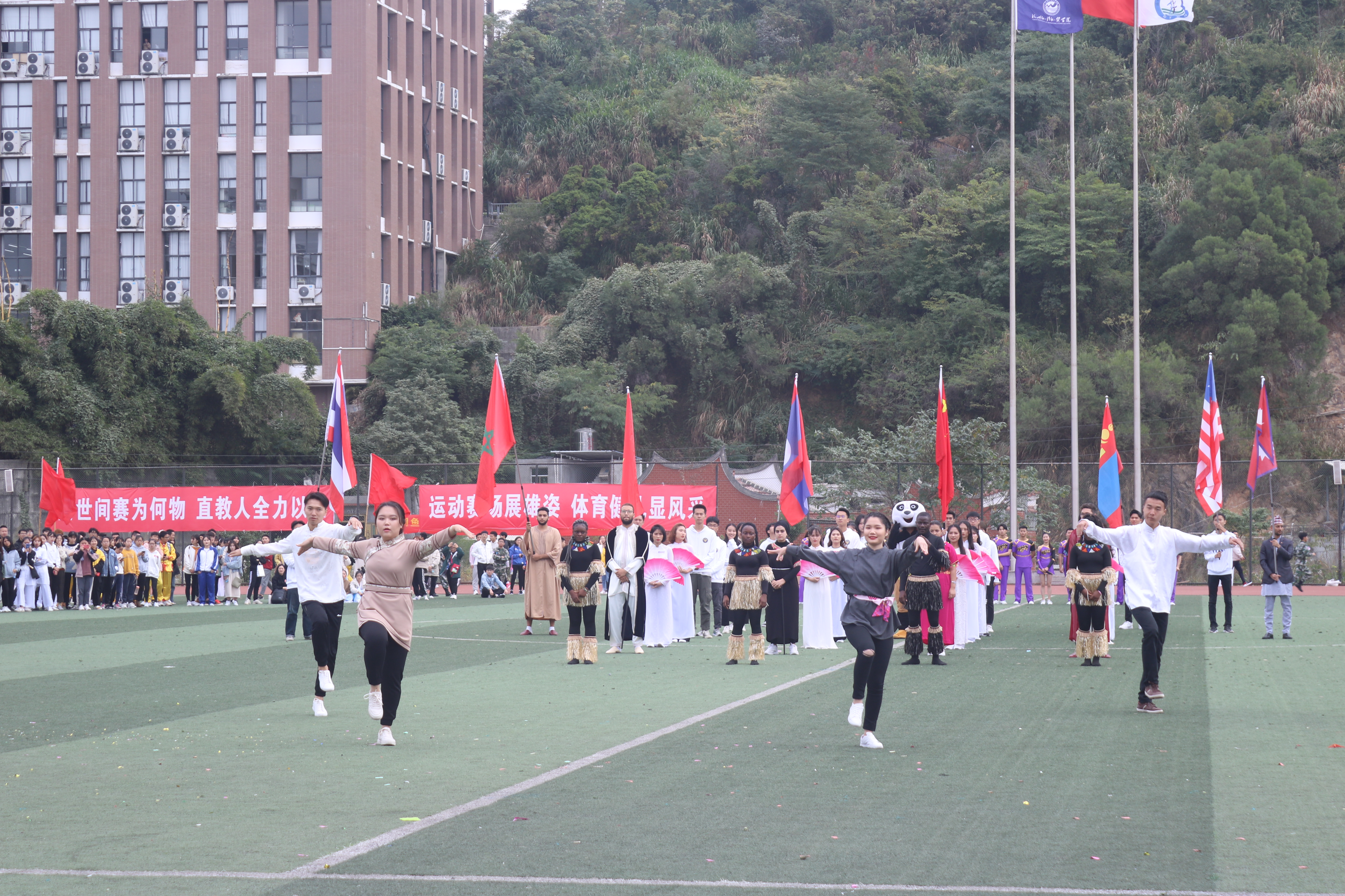 目前,我校有来自蒙古、利比里亚、摩洛哥、越南、泰国、老挝、尼泊尔7个国家的70余名国际本科生。国际学生积极为运动会献上精彩的舞蹈,彰显了他们热情和乐观向上的生活态度。学校将继续为中外师生营造国际化的学习交流环境,创造更精彩的校园生活,创造更加美好的未来!