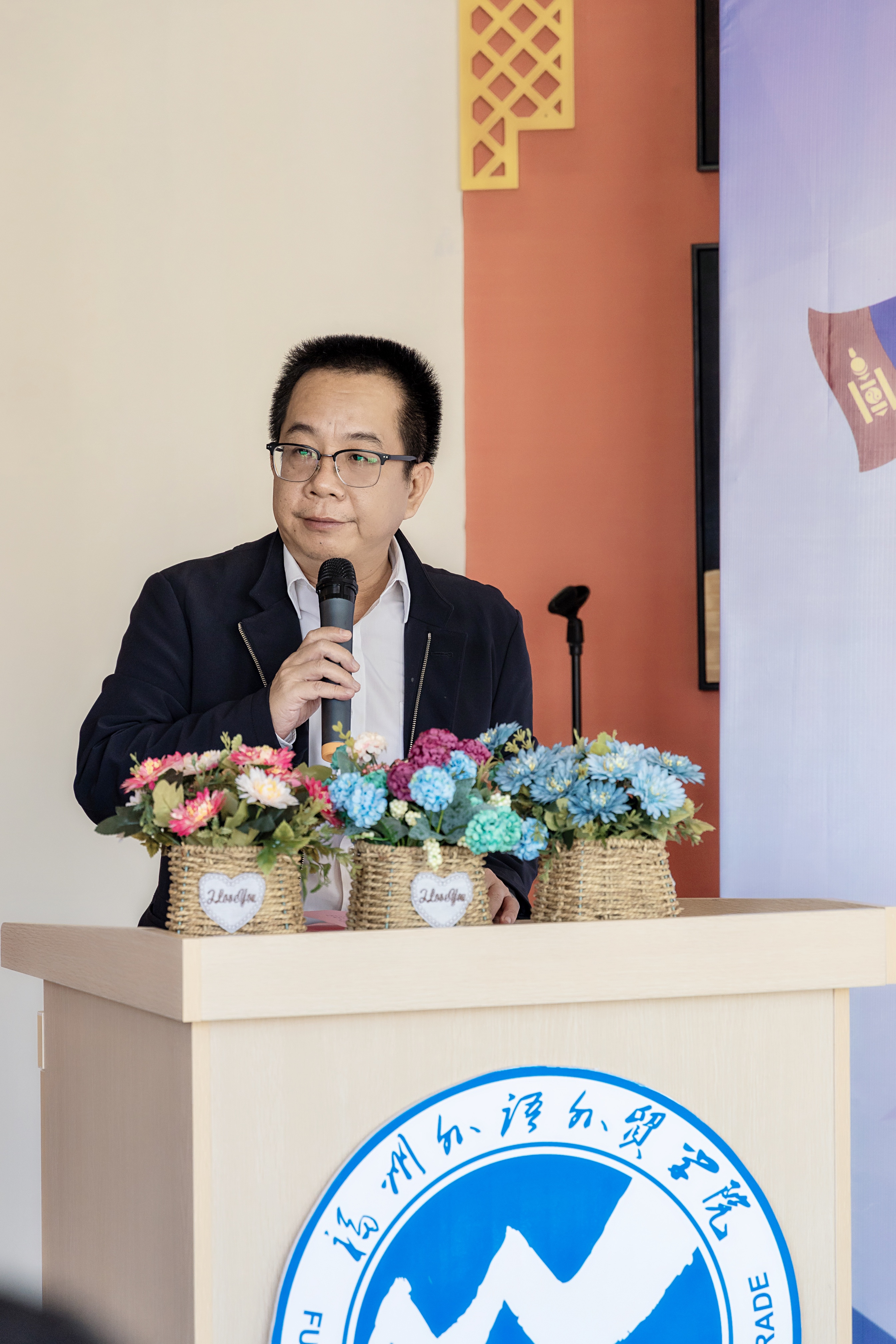黄建平代表学校向2019级国际学生致欢迎词,他简要介绍了千年闽都的历史,介绍了福外开展国际教育的进程,他特别指出学校在福建省首开全英教学本科学历班,组织中外学生同堂教学,旨在进一步突出福外外语外贸的学科专业优势,培育“外”字办学特色,提升国际化办学,吸引更多的国际学生来华留学,培育更多的中国学生走向世界,他鼓励中外学生爱祖国、爱家乡,把中国福外当做新的家乡,把福外作为自己在中国的家,他勉励国际学生了解中国,了解世界,学习知识,掌握技能,为共建创新包容的世界经济,为开创人类更加美好的未来努力学生,奋斗!