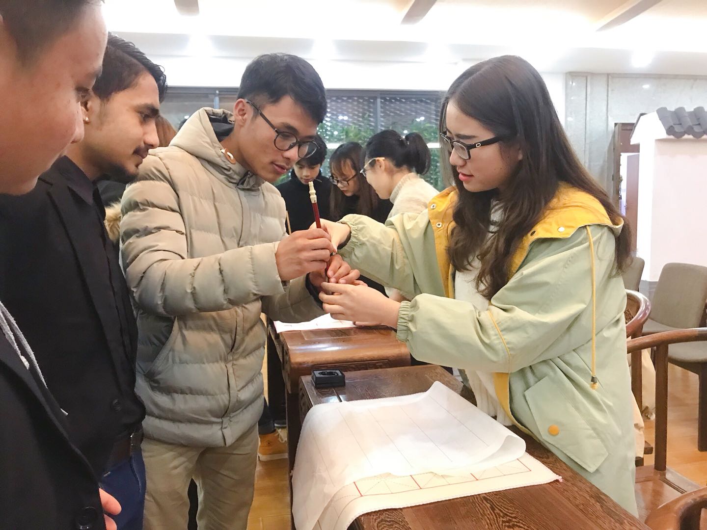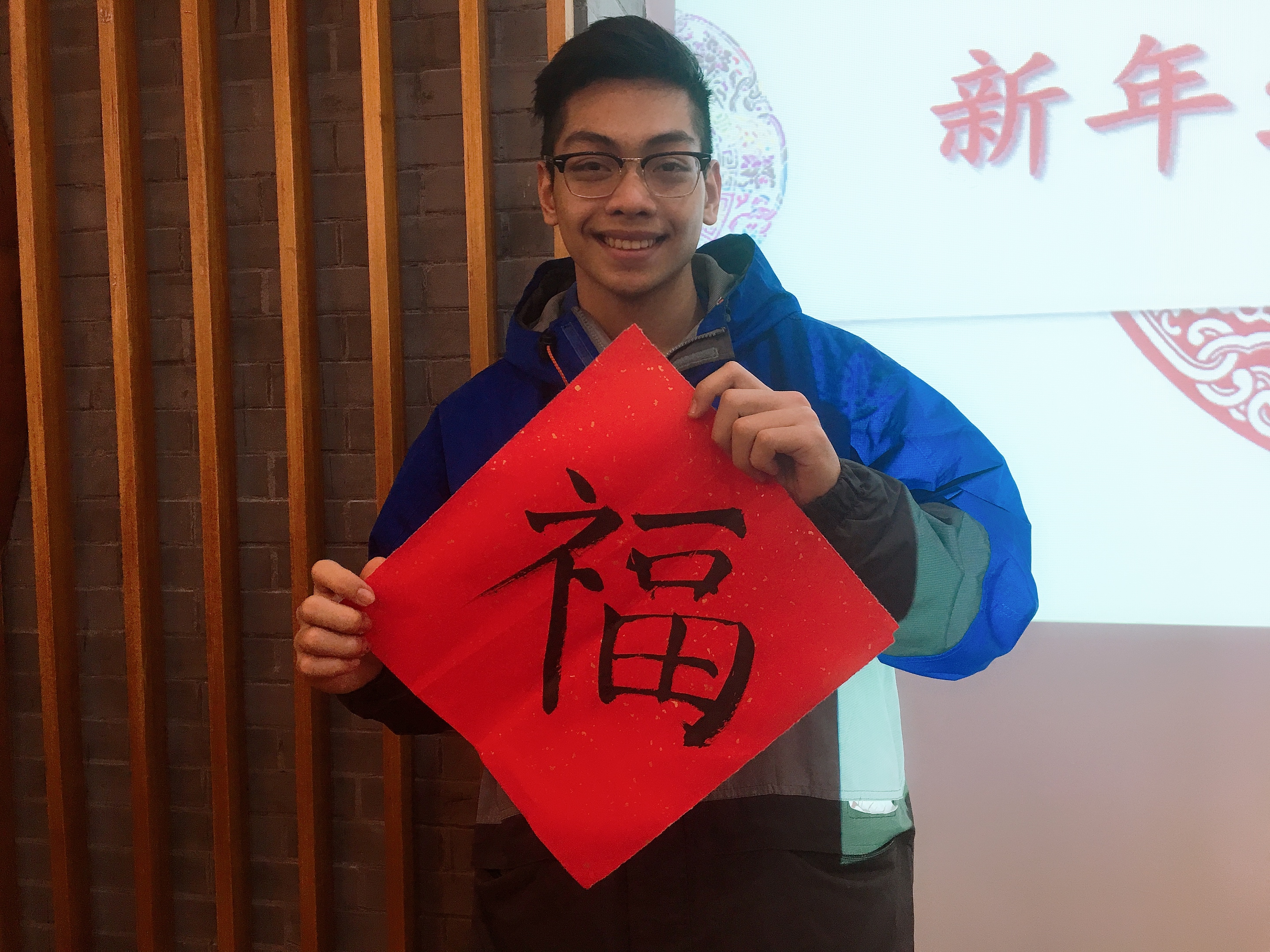 拿着自己亲笔写出的“福”字,越南籍学生阮黎明孝开心地表示,“我一定要将这个字带回家,倒着贴,让‘福’到我家,也让中国的经历和祝福帮助我越来越好。”