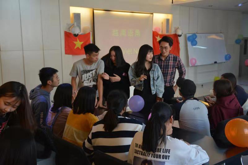 10月30日,在实验楼1302举行了第一期越南语角活动。越南籍师生30余人和外语类专业及精英班部分师生参加了活动。