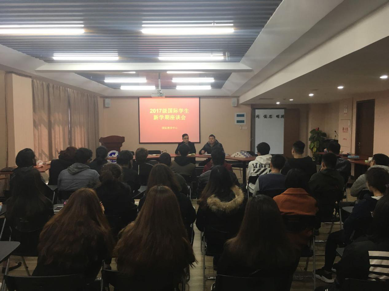 3月9日,国际教育中心在多功能研讨室召开2017级国际学生新学期座谈会,国际教育中心副主任卢人聪、国际学生管理工作相关人员、2017级国际学生参加了会议。