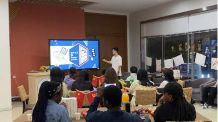 同学们围坐在一起游戏、聊天,更深入地互相交流家乡美食