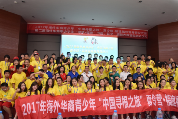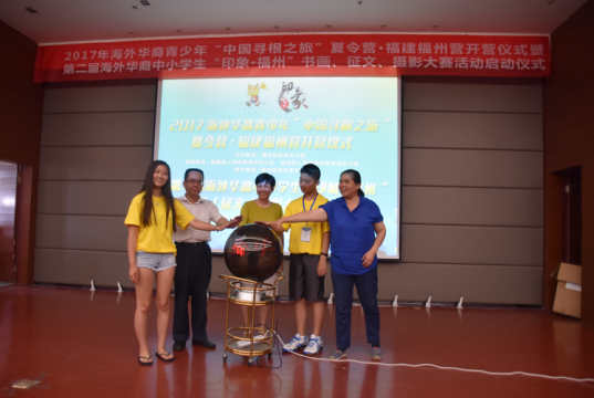 7月12日下午,2017年海外华裔青少年“中国寻根之旅”夏令营·福建福州营暨第二届海外华裔中小学生“印象·福州”书画、征文、摄影大赛以及启动仪式在我校举行。致公党福建省委常委、秘书长王惠忠,福州市外事侨务办公室副主任张素燕,福州晚报副总编刘琳,常务副校长黄建平教授,以及来自美国、德国、南美洲、新加坡和香港的近10位侨领,与来自美国、德国、法国、加拿大、西班牙、台湾等国家和地区的90名华裔青少年参与了开幕式。活动由国务院侨务办公室主办,省市侨办承办,福州外语外贸学院协办。