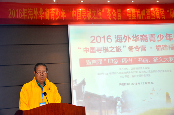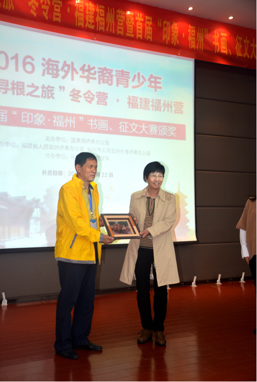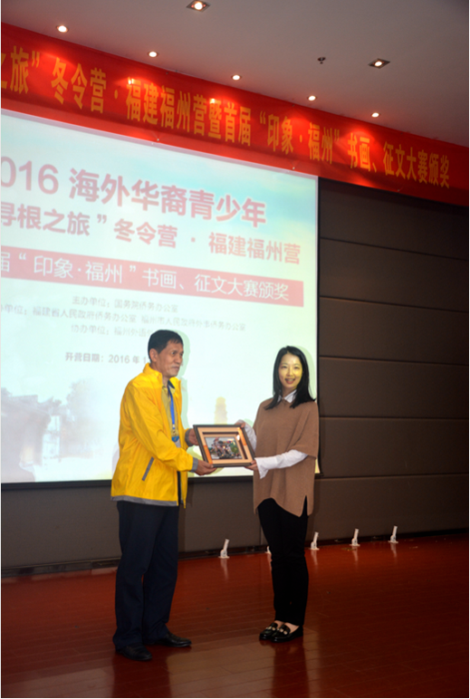 12月22日上午,2016年海外华裔青少年“中国寻根之旅”冬令营·福建福州营开营暨首届“印象·福州”书画、征文大赛颁奖仪式在我校学术报告厅隆重举行,出席活动的领导和嘉宾有:省侨办文宣处处长齐志、福州市外侨办副主任张素燕、福州晚报副总编谢联灵、东南网海外部主任王艳玲,我校常务副校长黄建平教授,董事长助理、校长助理吴新星,以及冬令营领队和营员、“印象·福州”大赛获奖学生代表、部分获奖学生家长、志愿者共120多人参加活动。