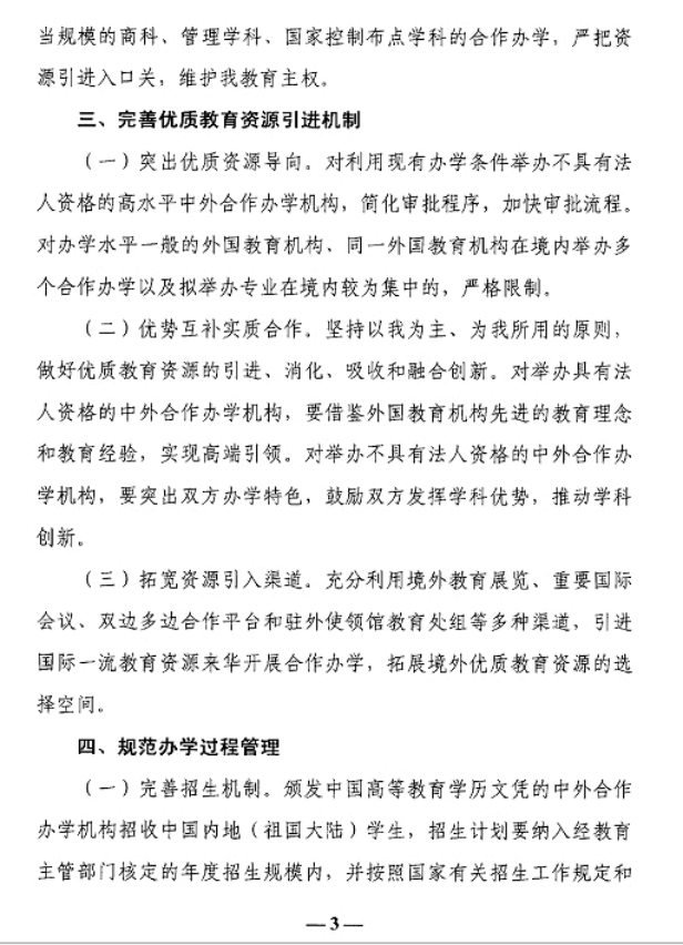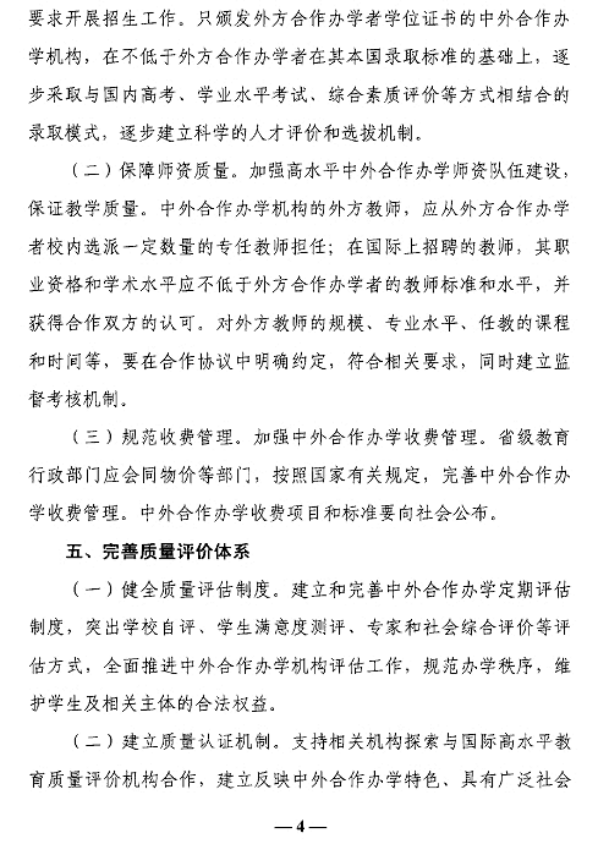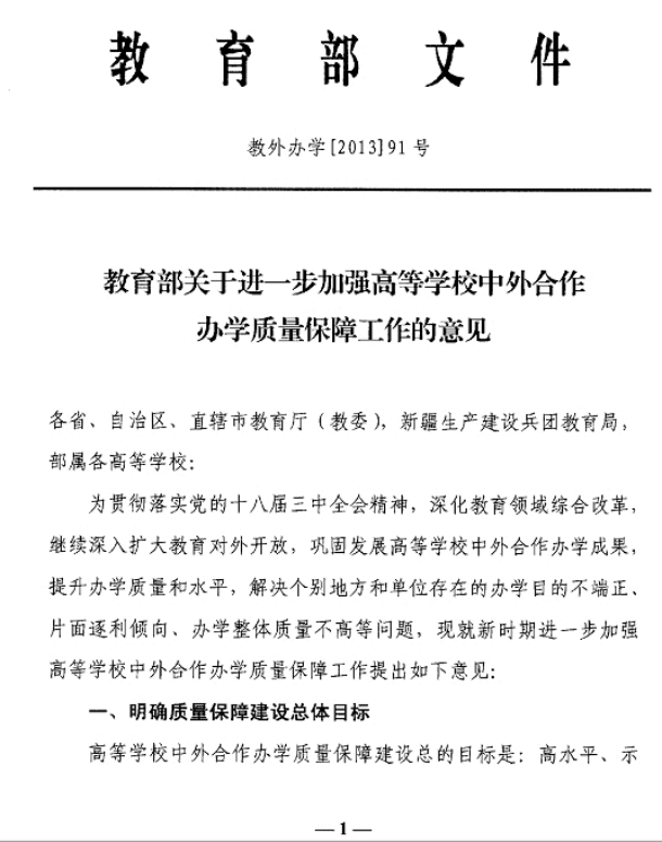 教育部开元网页版进一步加强高等学校中外合作办学质量保障工作的意见