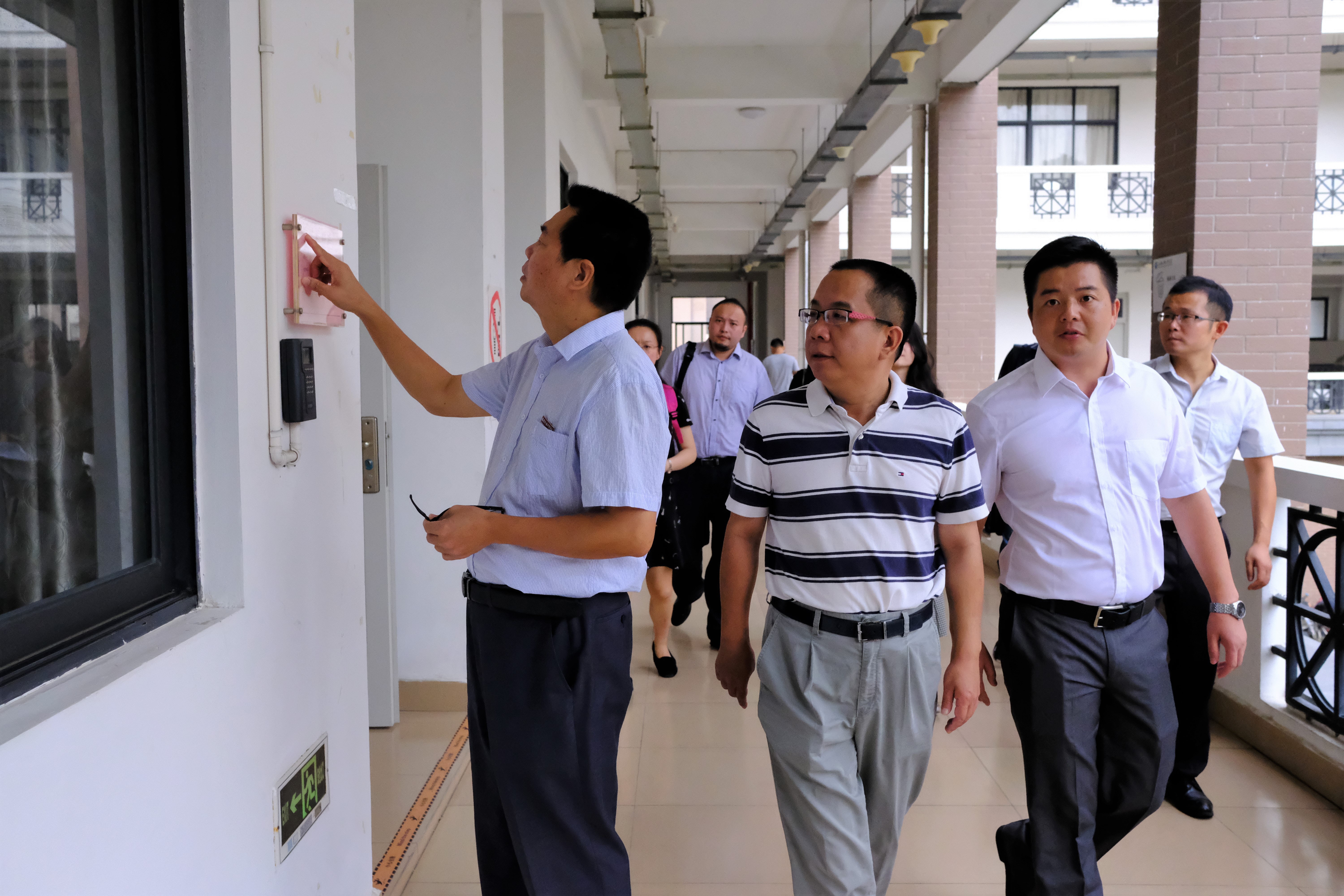 9月3日上午8时许,校长沈斐敏,党委书记陈炳钦,常务副校长黄建平,党委副书记、副校长徐国立,校长助理吴钦红等校领导带领校务中心、教学发展中心、学生发展中心、总务中心、各院(部)负责人,对新学期第一堂课上课情况和开学其它工作进行全面检查。
