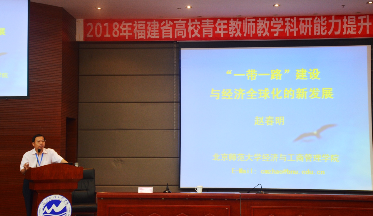 开班仪式后,赵春明教授做了题为《“一带一路”建设与经济全球化的新发展》的专题报告。