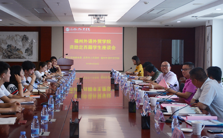 随后,召开“福州外语外贸学院资助定西籍学生座谈会”,徐国立简要通报了我校教育精准扶贫专项工作开展情况,介绍了下阶段我校开展定西市教育精准扶贫工作的计划。与会的15名我校全额资助的定西籍家庭经济困难学生踊跃发言,从学习、生活、创业等各方面分享在校感受。大家纷纷表示,学校领导、老师特别关注来自偏远地区的学生,在安排勤工助学岗位、申请发放奖助学金、组织课业强化辅导以及鼓励扶持自主创业等方面,都对定西籍学生予以倾斜。入校以来,定西籍学子在老师的鼓励和帮助下,积极参加各项竞赛、活动,不仅增长了见识、收获了奖项、学会了创业,而且全面提升了自身综合素质,更加善于展现自我。