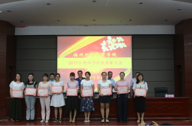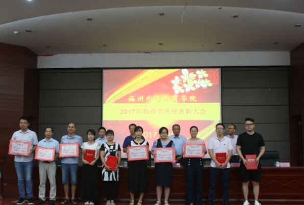 校领导为获得2017年福州外语外贸学院教师教学优秀奖老师颁奖