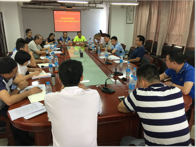 日前,我校召开2017年第二季度安全稳定分析会议,校领导沈斐敏、陈炳钦、黄建平、季祖强,各中心、系(部)负责人及学生发展中心室负责人、学安办、后勤公司有关人员参加了会议。
