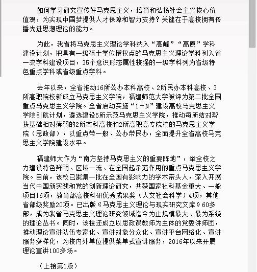 福建日报要闻版报道我校思想政治工作
