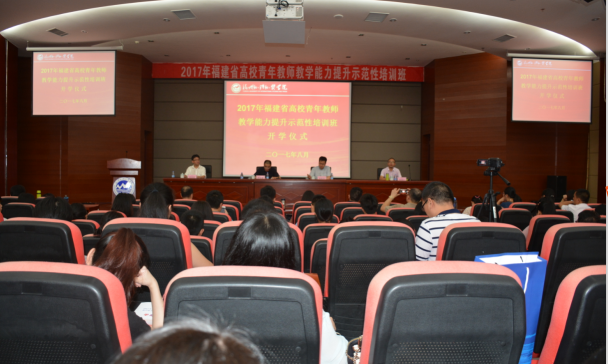 8月5日,2017年福建省高校青年教师教学能力提升示范性培训班开学式在我校学术报告厅举行。省教育厅教师工作处处长杨振坦,福建师范大学副校长、福建省高等学校师资培训中心主任郑家建,福建省高等学校师资培训中心常务副主任陈振祯,福建省高等学校师资培训中心副主任严俊雄,我校党委副书记、副校长徐国立副教授出席开学式,来自全省各高校130多名青年教师参加了仪式。开学式由陈振祯主持。
