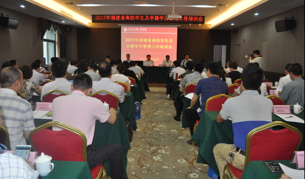 5月21日,由省教育厅主办、我校承办的2017年福建省高校学生及学籍学历管理工作培训会在我校国际交流中心举行。教育部高校学生司学籍学历管理处处长解汉林、全国高等学校学生信息咨询与就业指导中心信息资源处副处长刘云昭到会指导并作专题讲座,省教育厅学生工作处处长谢友平、副处长张敏及来自全省各高校学生及学籍学历管理工作部门负责人共90余人参加会议。我校校长、博士生导师沈斐敏教授,校党委副书记、副校长徐国立出席了开班式。开班式由谢友平主持。
