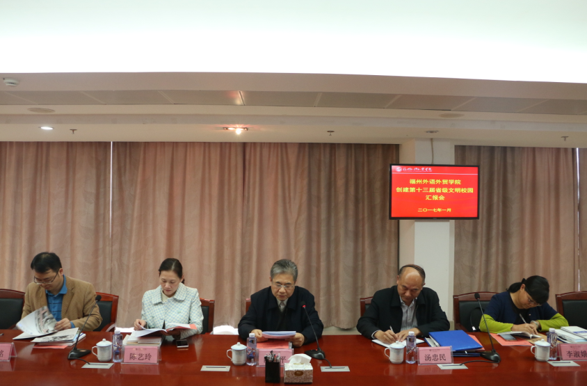 1月5日,以福州大学党委副书记陈少平为组长,厦门海洋职业技术学院党委副书记汤忠民,泉州医学高等专科学院临床医学系党总支书记陈艺玲,黎明职业大学学工处副处长、思政课教研部负责人李淑娥,福州大学党委宣传部综合科科长许志铭等五人组成的福建省第十三届文明校园考评组莅临我校进行实地考评。