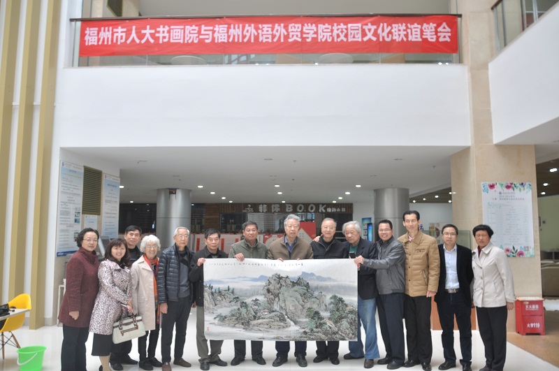 3月9日,我校与福州市人大书画院在图书馆开展校园文化联谊笔会。福州市人大常委会原主任、福建省书法家协会会员、市人大书画院名誉院长赵守箴,福州市人大常委会原副主任、福建省书法家协会会员、福州市书法家协会会员、市人大书画院院长郭永灿,福州市原市委常委、副市长、霞光画院院长龚雄等10位书画名家莅校。校长、博士生导师沈斐敏教授,党委书记陈炳钦以及影视系、美术系师生代表参加了本次活动。