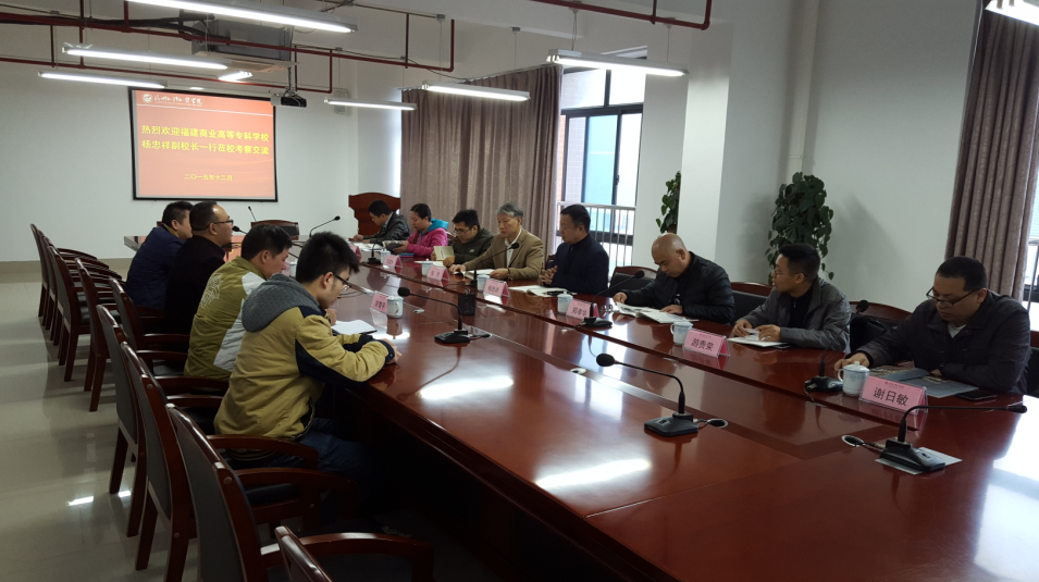 12月14日,福建商学院杨忠祥副校长一行莅临我校交流学习,校党委副书记、校长助理徐国立及相关中心负责人热情接待了访客。