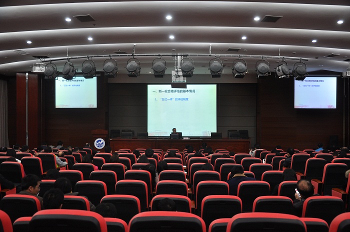 陈新民教授从新一轮评估的基本情况,新建本科院校的现状与挑战,以评促建、加快本科院校建设步伐三大方面,系统详细地讲解了本科教学合格评估的有关情况,并提出需处理好教学与科研、专业与学科、硬件与软件等关系,为我校“迎评促建”工作的开展和教育教学水平的提升指明了发展方向。