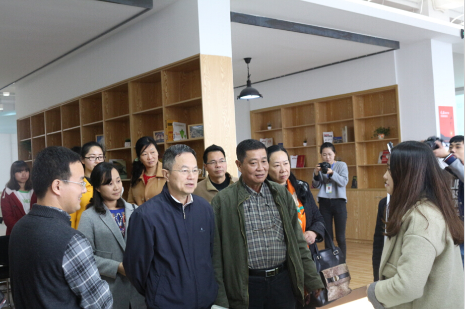 随后,在校领导陪同下,薛卫民一行实地考察了我校教师发展中心、学生创业基地。教师发展中心建筑面积3919平方米,包括教师工作室、教职工成长中心、技术资源区(含视讯室、录播室、数字教材制作室),学生创业基地建筑面积11000多平方米,集创新创业指导、创客工作室、创客沙龙、创业讲坛、创客咖啡为一体。薛卫民详细了解了中心、基地的使用功能和运行情况。在学生创业基地,薛卫民与创业学生们亲切交谈,详细了解项目运行情况,为大学生创业提供指导,亲切的话语和睿智的建议,赢得学生们阵阵掌声和欢笑声。