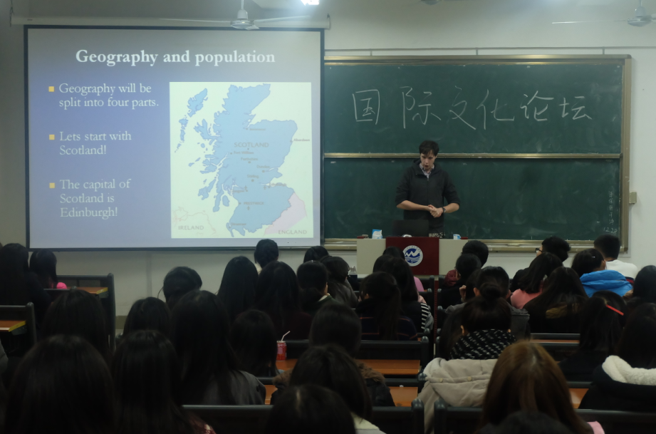 12月28日至30日,国际文化系列论坛活动在我校成功举办。本次活动邀请我校来自英、美、法、日、澳、加等国家的外籍教师,从当代英伦、美国审美标准、好莱坞电影、法国咖啡文化、日本习俗、澳洲英语、中加差异等不同角度,开展6场系列讲座,活动获得学生们的热烈欢迎。