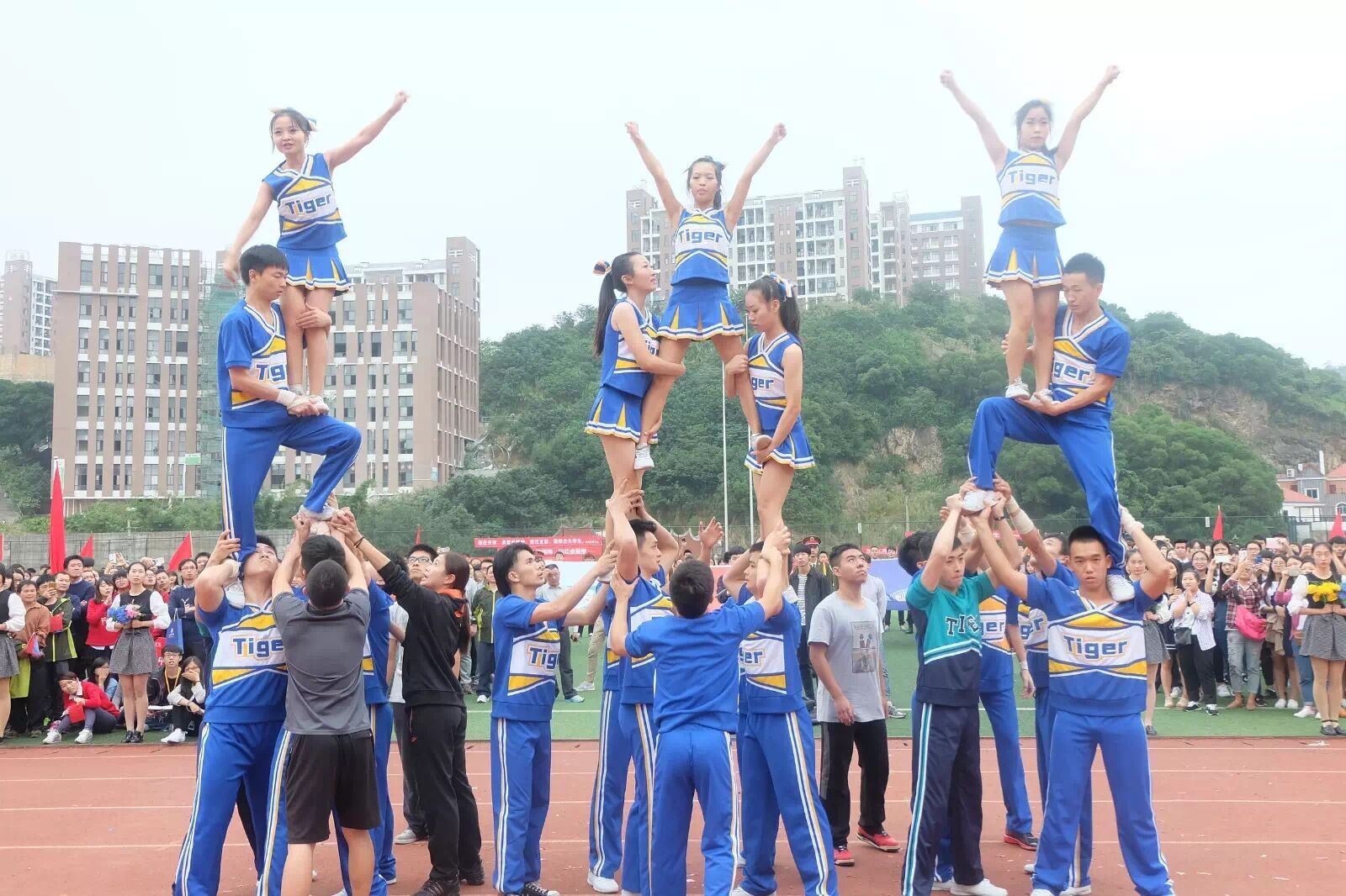 最后压轴出场的【Tiger啦啦操团队】曾代表学校获得多项荣誉,在现场多次展示托举、空翻等高难度动作,