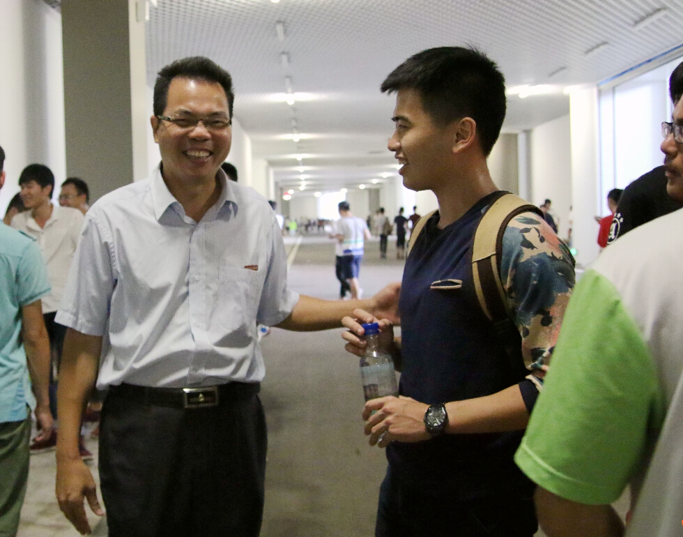 10月8日上午,校领导吴钦明、沈斐敏、陈炳钦、季祖强在学生发展中心负责人等同志的陪同下,来到福州海峡奥林匹克体育中心看望并慰问我校参加青运会开幕式排练的学生志愿者。