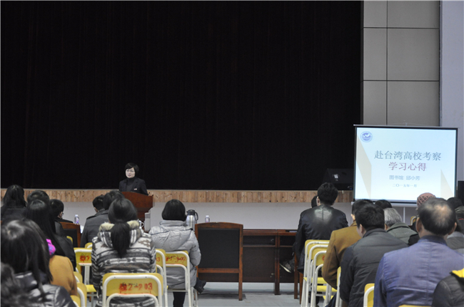 日前,我校吴钦明董事长、沈斐敏校长率机关部处、各院部50名中层以上干部赴台湾铭传大学、中原大学、淡江大学、树德科技大学等4所高校开展考察学习。1月27日,我校召开赴台参访经验交流会,校长沈斐敏教授,常务副校长黄建平教授,党委副书记、校长助理徐国立,党委副书记、校工会主席、校长助理季祖强,校长助理吴钦红,董事长助理、校长助理吴新星以及全体教职工参加了会议。会议由黄建平教授主持。