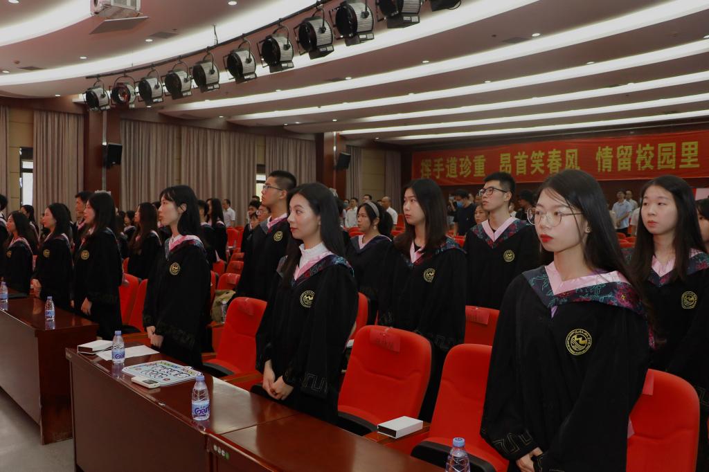 现场通过视频连线,邀请了艺术与设计学院2018级广播电视编导专业鲍妮同学作远程视频发言,她代表全体在校生祝贺学长学姐们如期完成学业,表示将以学长学姐们为优秀榜样,认真学习,努力拼搏,并祝愿学长学姐们前程似锦。