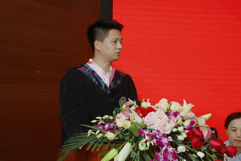 财金学院2020届投资学专业1班毕业生、考取“985” “211”高校西南交通大学研究生的傅显同学发言,他代表全体毕业生向母校和师长们表达了衷心的感谢和崇高的敬意,表示难忘大学时光,今后将奋斗不止,并祝福学弟学妹们学业有成。