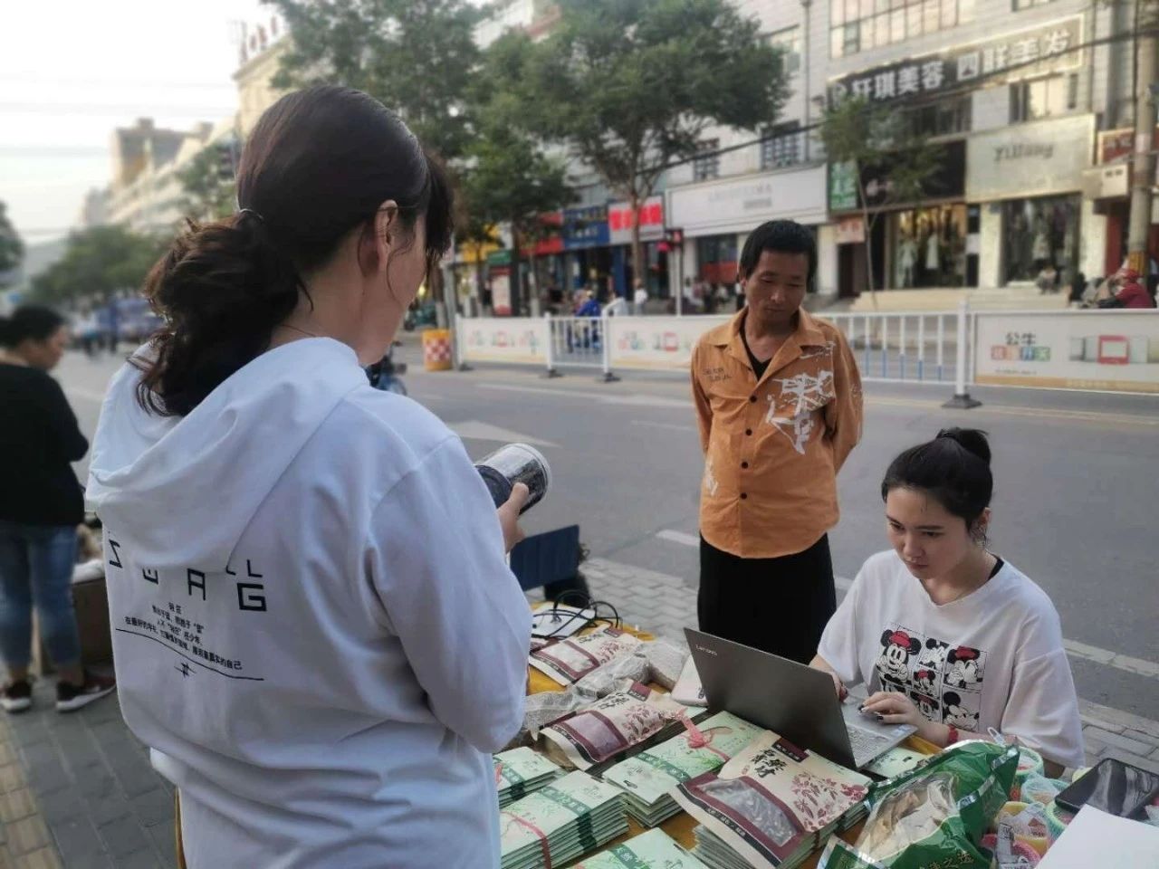 最近,在甘肃省定西市安定区友谊广场、漳县菜市场和漳县商贸一条街,出现了一批特殊的摊主,他们除了销售定西特产枸杞、当归、党参、羊肚菌等养生中药材,还在摊位上免费为群众开展电商科普。