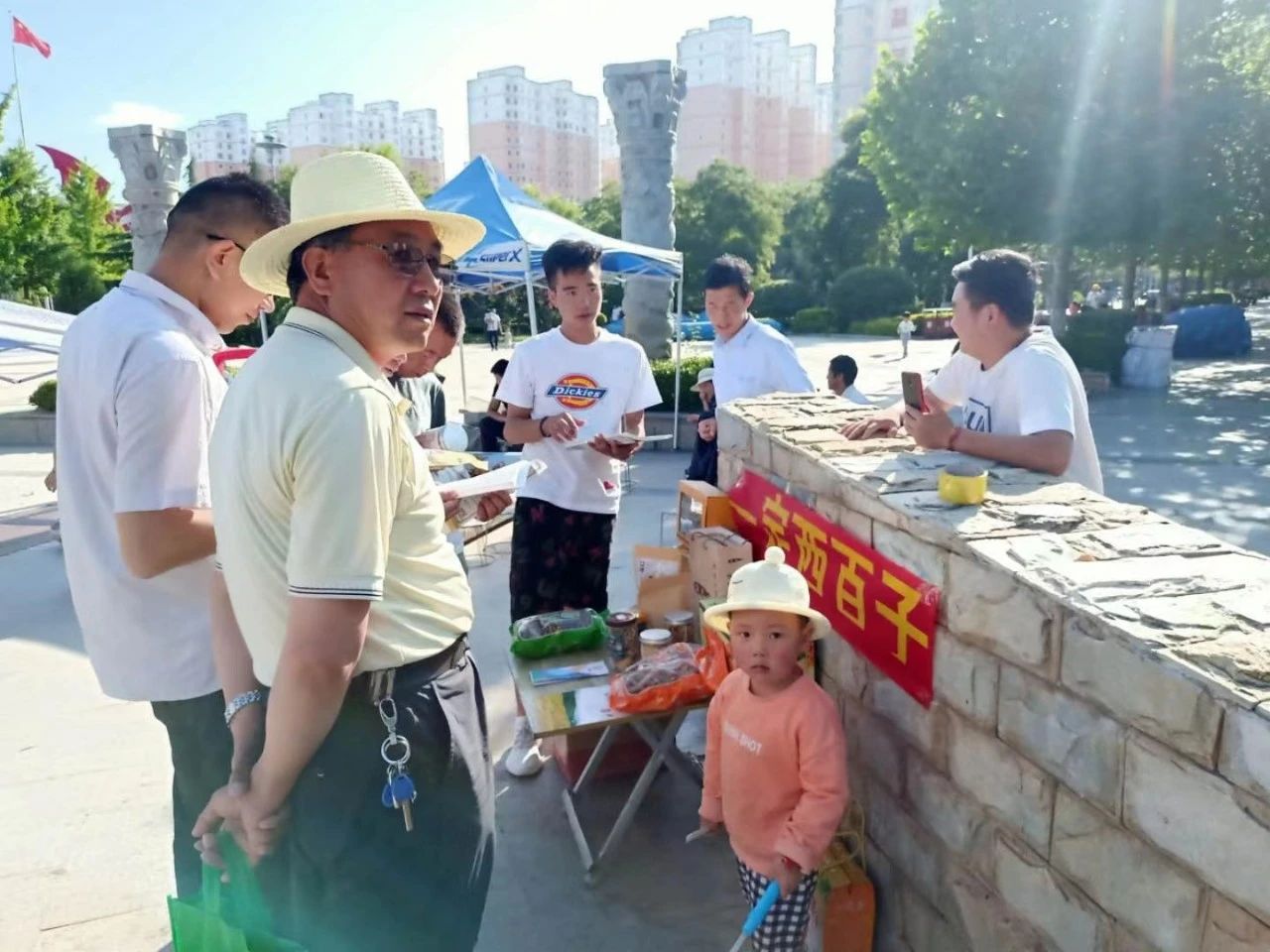 摊位现场吸引了不少市民驻足,大家对当地的中药材都很熟悉,对电商也不陌生,可是对公益电商充满了好奇。“百子”们面对面地向市民们进行讲解,耐心地介绍自己搭建的“以渔”公益电商平台,号召大家加入“以渔”平台,为家乡的脱贫攻坚共同努力。
