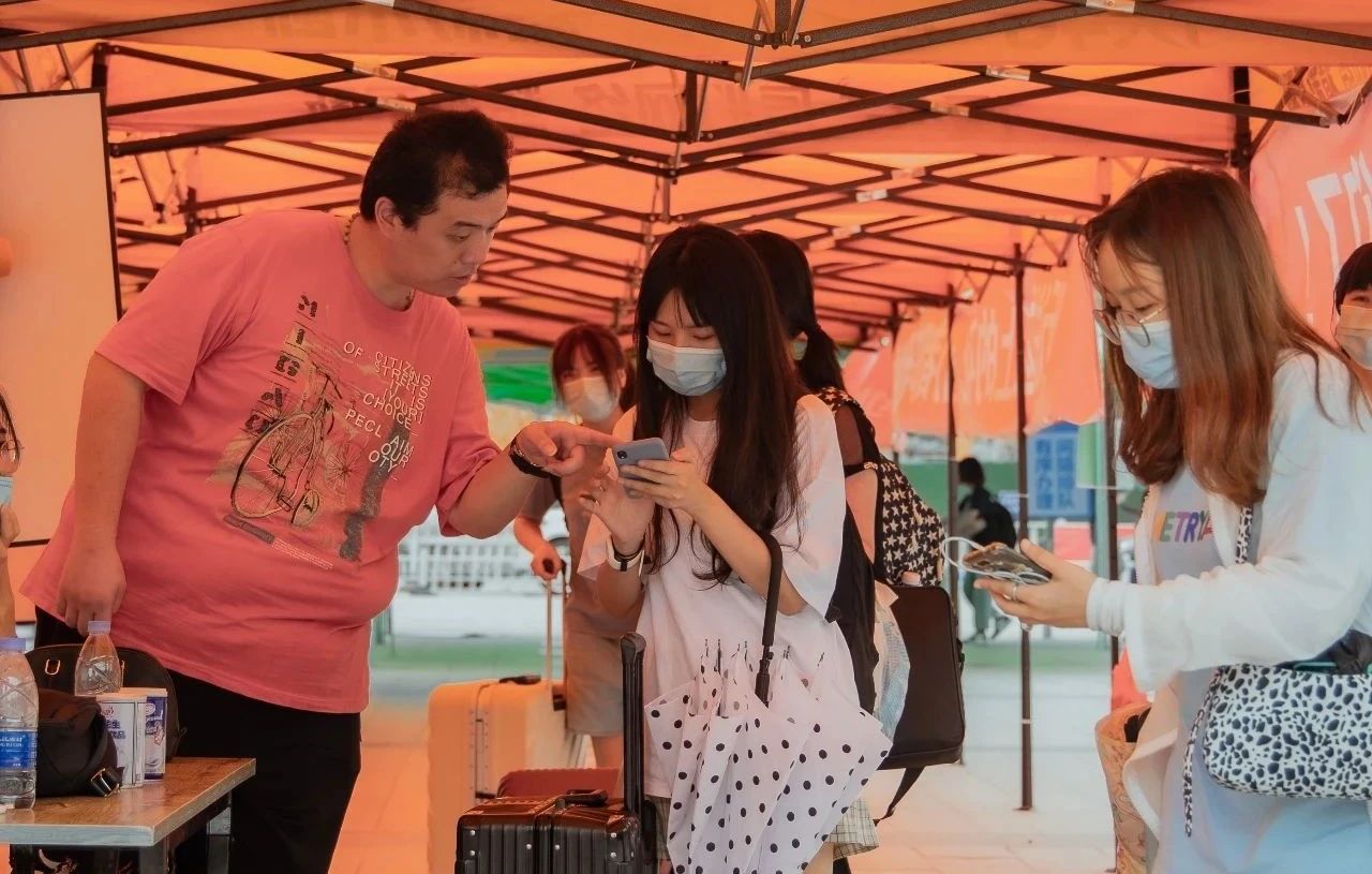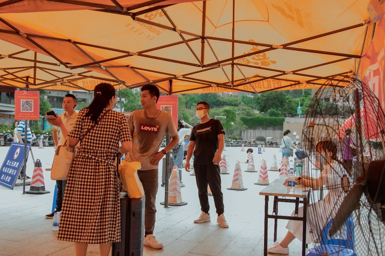 学校门口,工作人员带着热情与微笑迎接返校学生。返校学生在现场工作人员耐心的引导下,在入校通道有序排队并扫码签到,出示身份验证,再通过人脸识别门闸,最后通过测温门进入校园。