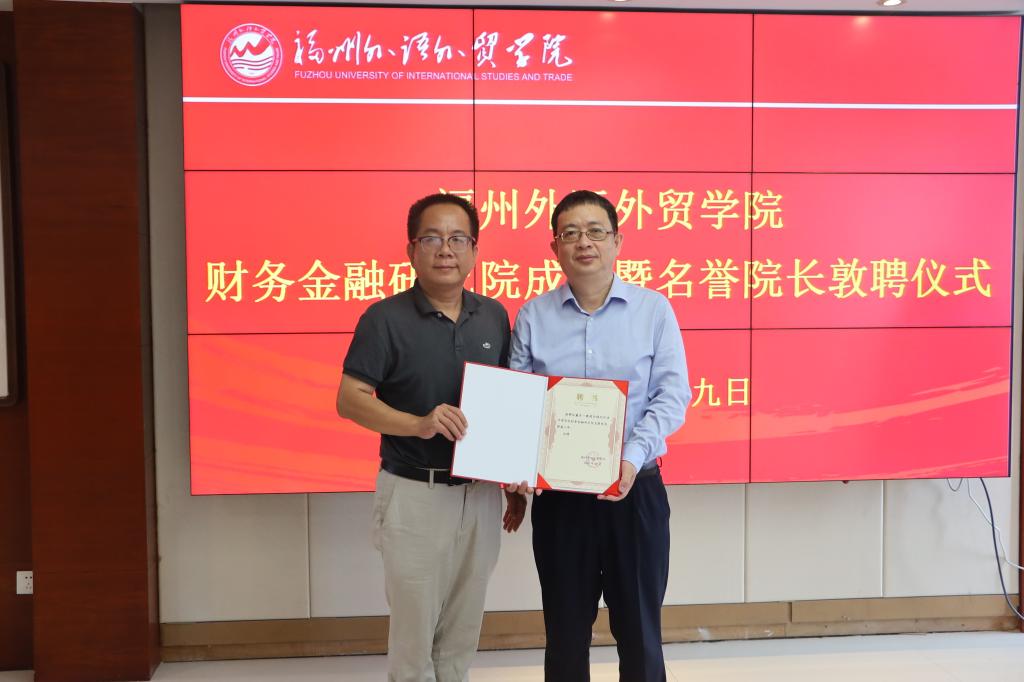 戴亦一教授感谢学校对自己的信任与厚爱,对学校办学以来取得的成果表示肯定。他表示,有机会加入福州外语外贸学院十分荣幸,也深感责任重大,自己一定会尽最大努力,用辛勤的付出将财务金融研究院打造成创新型的科研平台,为学校发展和学科建设贡献力量。
