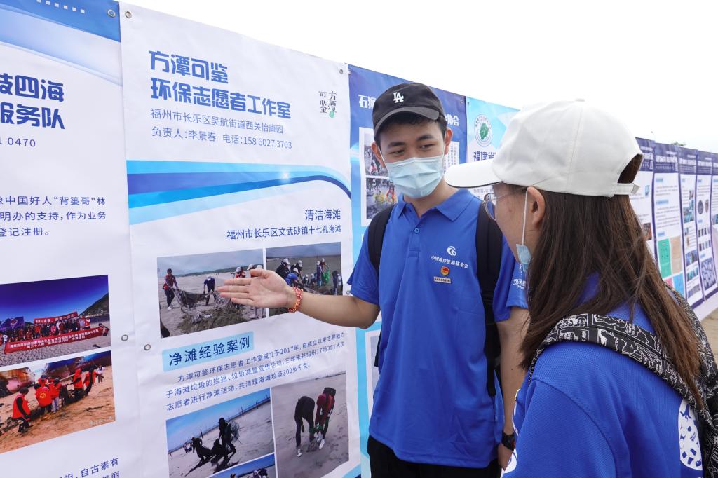 我校的青年志愿者们,统一头戴小白帽,身穿小蓝衣,来到了漳港海岸边与各环保组织与协会集结。活动现场设置了清洁海滩典型案例主题图片展、科普宣传展、海洋源头垃圾有效控制案例展、海洋垃圾再生工业与工艺运用展等。