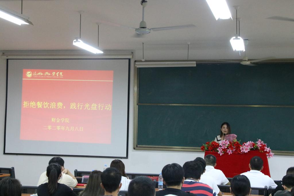 9月8日,财金学院召开“拒绝餐饮浪费,践行光盘行动”动员大会,会议号召全院同学要发扬艰苦奋斗、勤俭节约的优良作风,从点滴做起,主动参与到“光盘行动”中。
