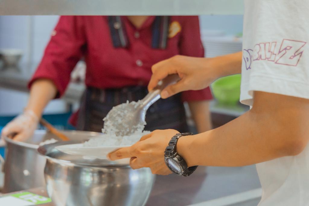 同学们发现,打饭窗口特别设置了“匀饭处”,据“匀饭处”工作人员介绍,这种做法可以让吃不下米饭的就餐者匀一部分米饭至“匀饭处”,觉得不够吃的就餐者可以从“匀饭处”增加米饭,达到从细节上厉行节约的效果,让师生“共享”米饭。