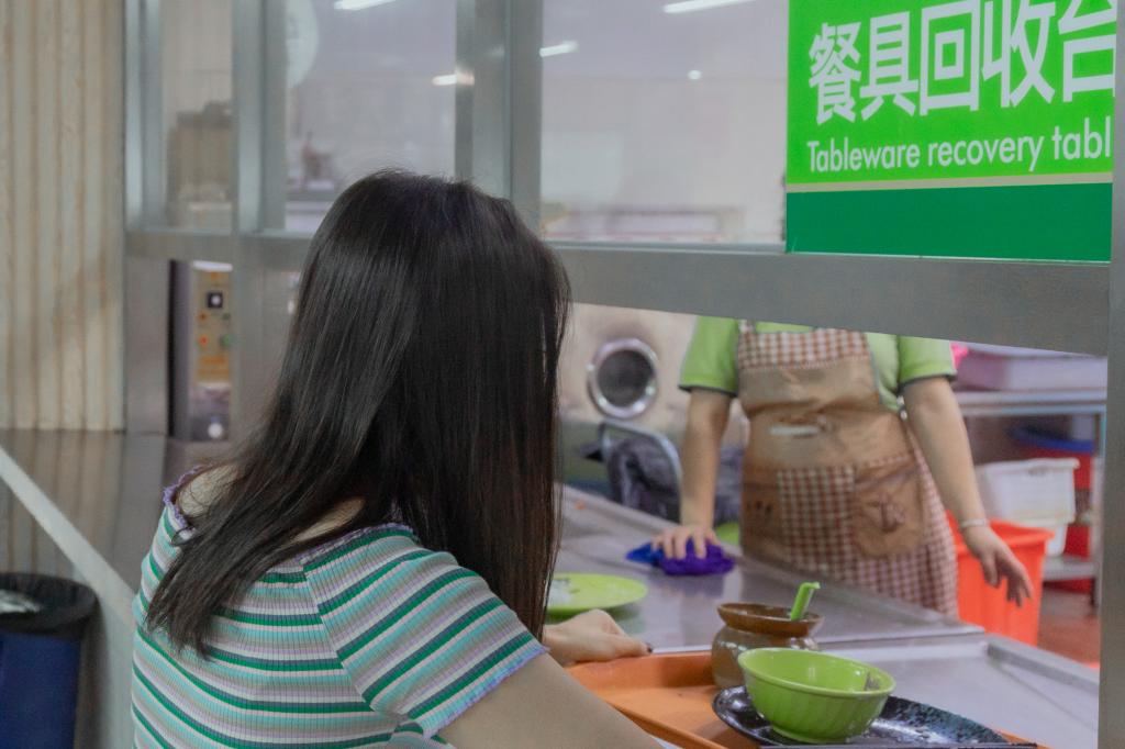 在餐厅的餐盘回收处,记者发现,送回来的餐盘大部分都是“光盘”,回收处的工作人员表示,相较以往,本学期开学以来,剩饭剩菜明显减少。