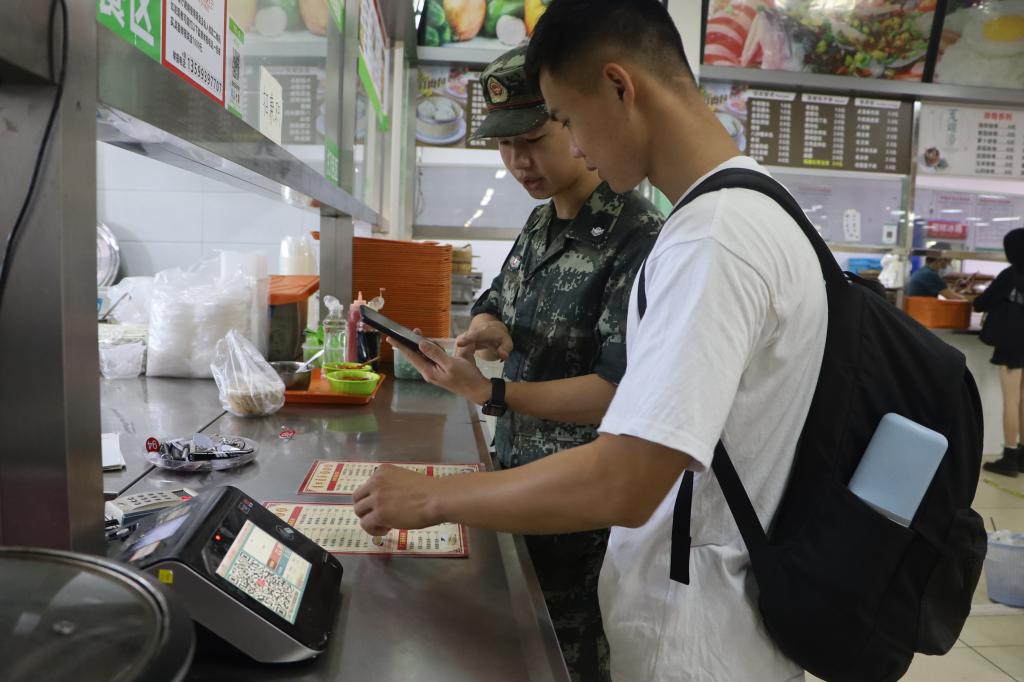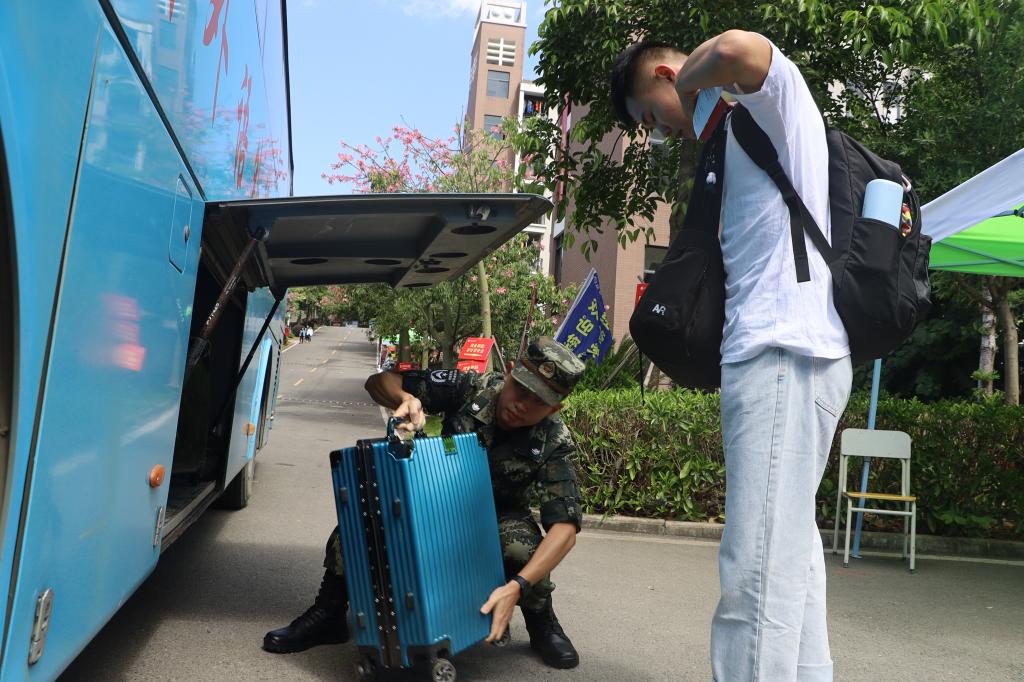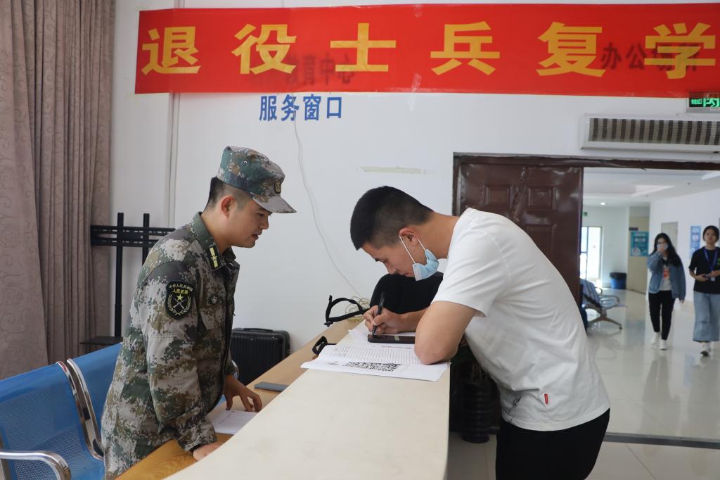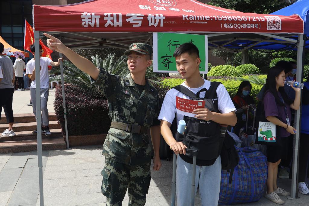 上午11时,退役士兵复学报到服务点迎来首位报道新生,既是老兵又是老生的2018级经济与统计学专业林艺泽承担起了一对一的服务,从手续办理、入住宿舍再到福外第一餐饭,贴心的引导与服务让新生小王感受到了福外大家庭的温暖,他表示:“本来有些担心退伍复学在身份转变上会不适应,但是有了福外学长的帮助,我一定很快就能适应大学生活。”