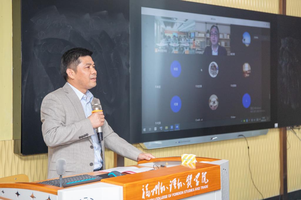 研讨会采用线下线上专家主旨演讲与线下研讨相结合的方式。出席研讨会的有来自厦门大学、福州大学、福建师范大学、华侨大学、福建商学院、闽江学院、福州外语外贸学院、辽宁大学、浙江工商大学等省内外高校国际经济与贸易专业负责人及骨干教师、福建省对外经济贸易学会理事及会员。研讨会由福建省对外经济贸易学会副会长、福州外语外贸学院开放型经济与贸易研究中心(省级高校人文社科研究基地)主任陈忠教授主持。